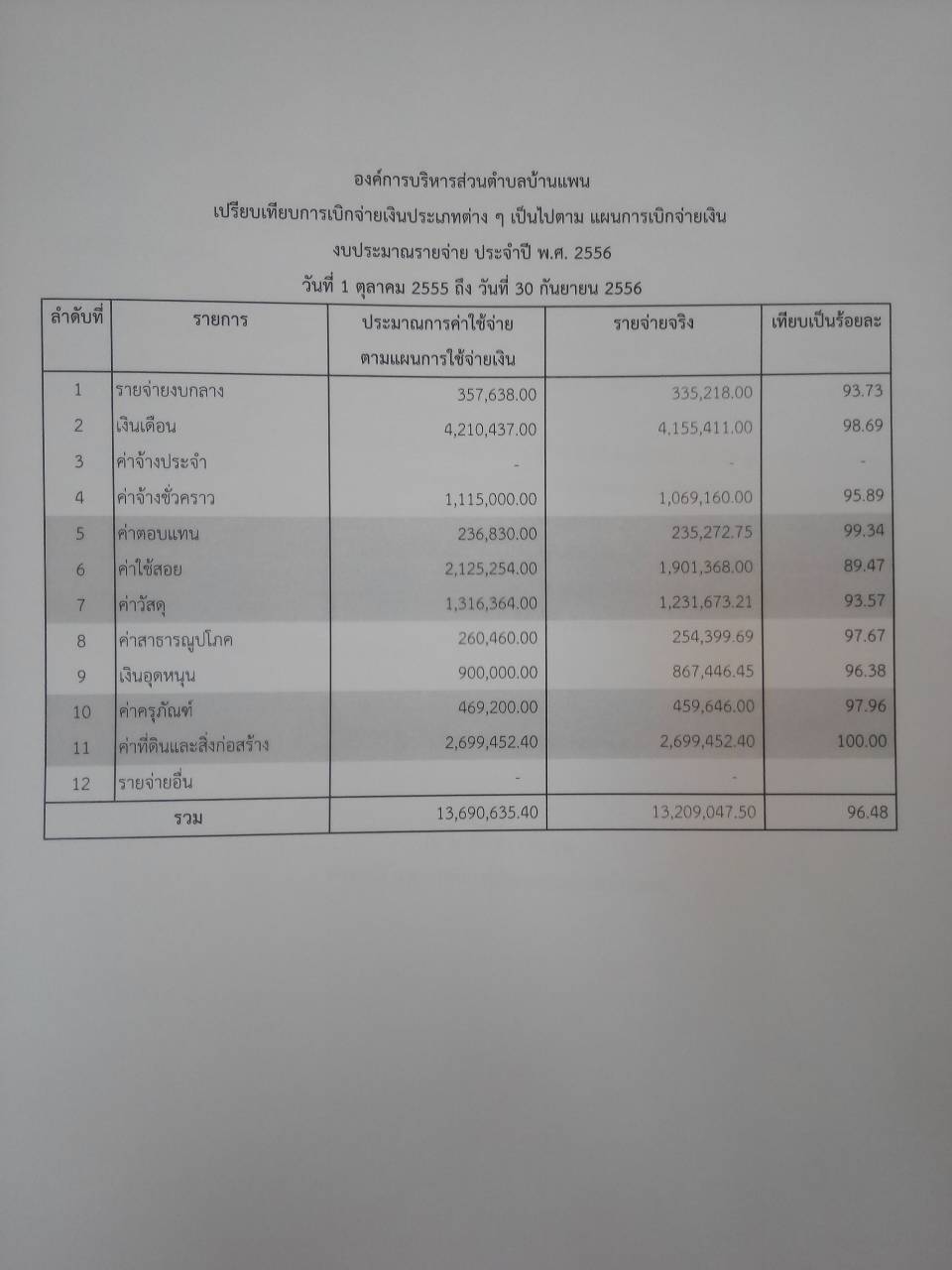 รายงานทางการเงิน ปีงบประมาณ 2556
