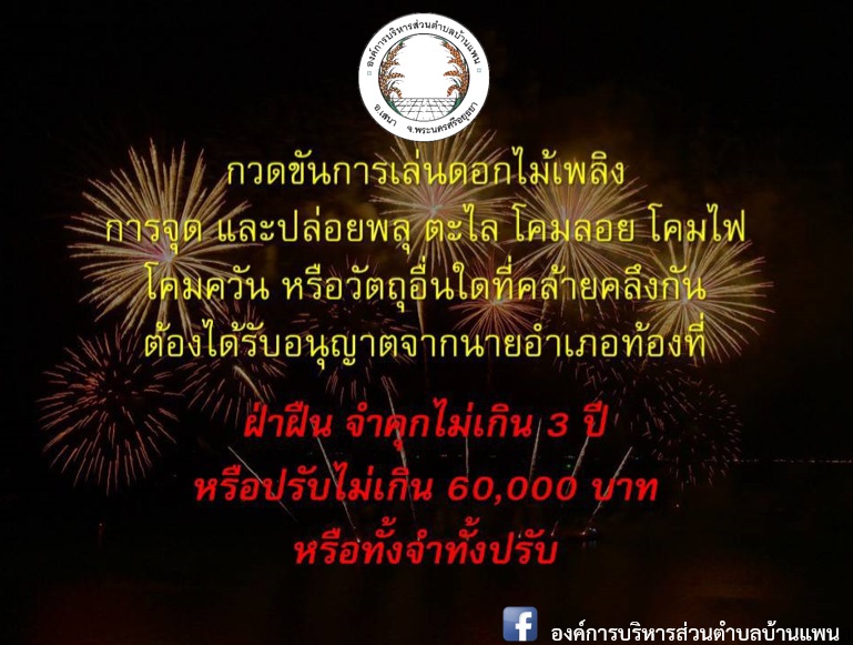 การเล่นดอกไม้เพลิง การจุดและการปล่อย พลุ ตะไล โคมลอย โคมไฟ โคมควัน และการใช้อาวุธปืนยิงขึ้นฟ้าโดยไม่ใช่เหตุในช่วงเทศกาลส่งท้ายปีเก่าต้อนรับปีใหม่ 2566